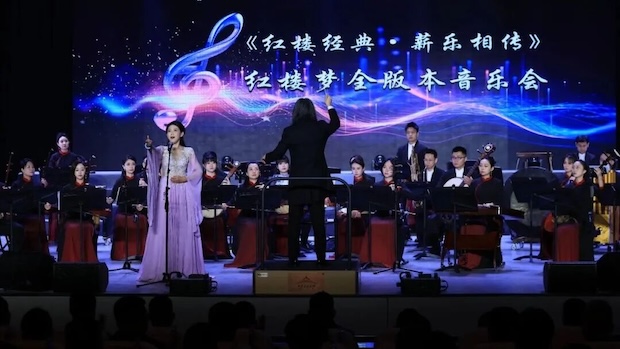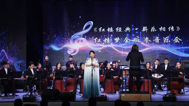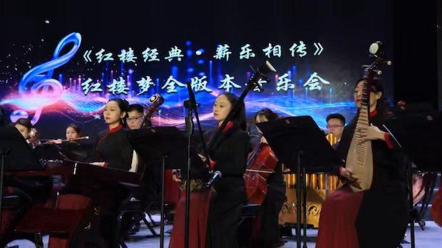 《红楼经典·薪乐相传》红楼梦全版本音乐会演出现场,婉转乐声在漠河市宣传文化中心缓缓流淌。