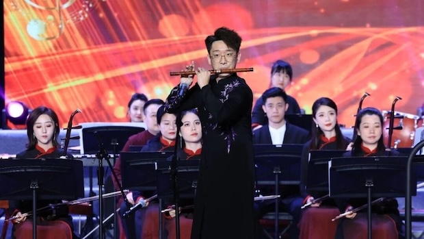 演出中亮点频现:笛子演奏员走下舞台,与观众近距离互动,台上台下呼应不断,气氛热烈;《百鸟朝凤》乐声悠扬间,即兴融入“大姑娘美”舞蹈,灵动舞姿与乐曲相融,为现场再添亮色。
