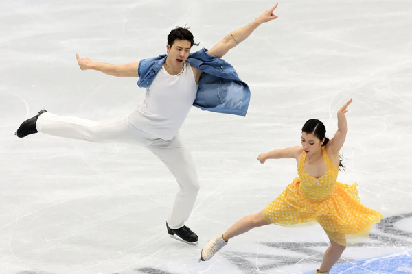 在当天率先进行的冰舞韵律舞比赛中,久别国际赛场的王诗玥/柳鑫宇在第一组第四位出场。本赛季冰舞韵律舞主题是“20世纪90年代舞曲”。伴随动感十足的《独自去偷欢》《护花使者》粤语歌曲串烧,曾两度亮相冬奥会的王诗玥/柳鑫宇凭借流畅优美的演出获得67.59分,在全部19组选手中排名第六。