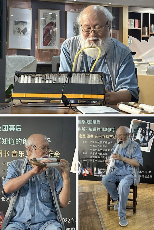 活动现场,王建民从众多发明创新类乐器成果中精选6种乐器与8种电吹管仿真乐器,演奏了二十余首中外名曲,和歌颂疫情战斗者自创的《逆行颂》。填补我国民族乐队中低音弓弦乐器空白、能够发出像大提琴那样优美低沉且明亮的“月胡”,尽展快速演奏技巧用来挑战“吉尼斯世界纪录”的“活塞笛”,用注射器制成、能够进行和声演奏的“双音排箫”等设计新颖、音色动听的发明创新类乐器悉数亮相。