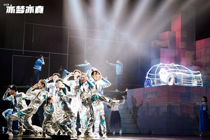 10月20日,由北京演艺集团和北京经开区文联联合出品制作,北京歌剧舞剧院、尚亦城(北京)科技文化集团承制,北京歌剧舞剧院演出的音乐剧《亦梦亦真》在北京天桥艺术中心首演。这部音乐剧紧扣科技强国、科技兴邦、芯片制造的国运大主题,以“好运”智能车公司为代表,描述21世纪后亦庄的发展与腾飞,通过一个个真实生动的人物与无人驾驶汽车研发、化解芯片危机等情节,构成一个完整、缜密、有“体温”的戏剧链条,揭示出中国高新产业先行者寻找初心和追求梦想的心路历程。该剧令人印象深刻的不仅仅是跌宕起伏、扣人心弦的戏剧故事,充满高科技感的舞台美术和强烈现代都市感的音乐,同样让在场观众兴奋不已。