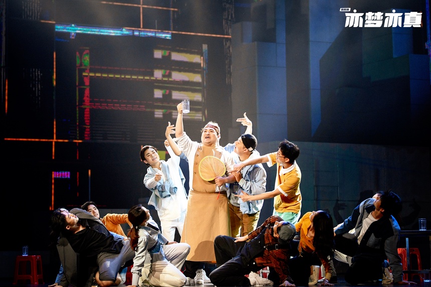 载歌载舞的群戏从来都是音乐剧的重要看点。舞蹈艺术家王亚彬出任编舞,让《亦梦亦真》合唱队的舞蹈不仅更具观赏性,还对故事推进、场景转换、调剂氛围起到重要作用。