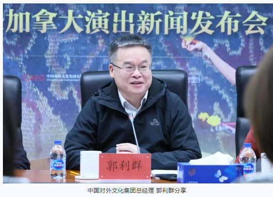 郭利群在发言中,深度解读了“中华风韵”品牌助力中华文化走出去的创新实践和重要意义。他强调,舞剧《五星出东方》所讲述的故事充分体现了中华文明的和平性,其中蕴含的内核价值是对和平安宁、国泰民安的祈盼,此次访演,我们不仅希望让加拿大观众看到一部优秀的中国舞剧,更希望通过这部作品,搭建中加文明对话的桥梁——让当地观众从“五星出东方”的故事里,读懂中华文明“各美其美、美美与共”的历史传统。
