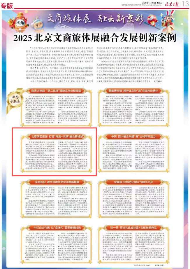此次活动更通过深度挖掘经典IP的衍生价值,创新消费场景,发挥演艺赋能旅游、繁荣消费的积极作用,为北京全国文化中心和国际一流旅游城市建设贡献了生动的“演艺+”融合样本。